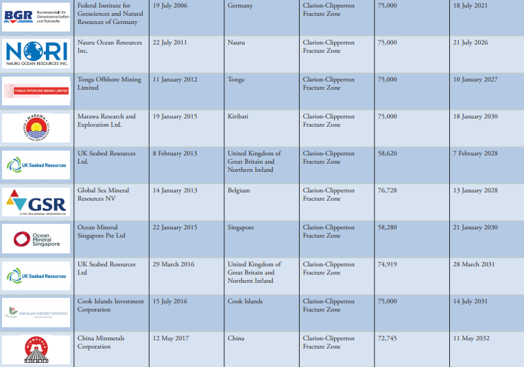 List of Contractors for Polymetallic Nodules at CCZ (Source: https://www.isa.org.jm/publications)